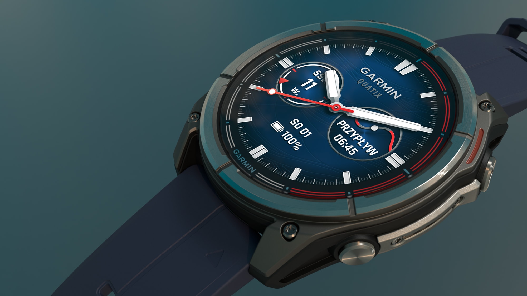Stworzony z myślą o życiu przy sterze: konstrukcja klasy premium tego urządzenia wyróżnia się przystosowaniem do nurkowania i szczelnymi przyciskami, metalową osłoną czujnika oraz jasnym wyświetlaczem AMOLED o przekątnej 1,4″ z soczewką o zwiększonej odporności na zarysowania wraz wytrzymałą ramką z tytanu.